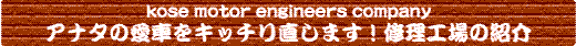 古瀬自動車は、昭和44年5月25日に自動車修理 工場として、この地で一歩を踏み始めました。 現在は、鈑金は第三工場。塗装は第二工場で 行っております。 第一工場では、修理完成車の仕上がり検査が 行えるように、クルマの天井及びサイドから、ライト を照射できる設備になっております。 また、修理にお預かりしました、車高の高いトラック の格納も可能な構造になっております。
